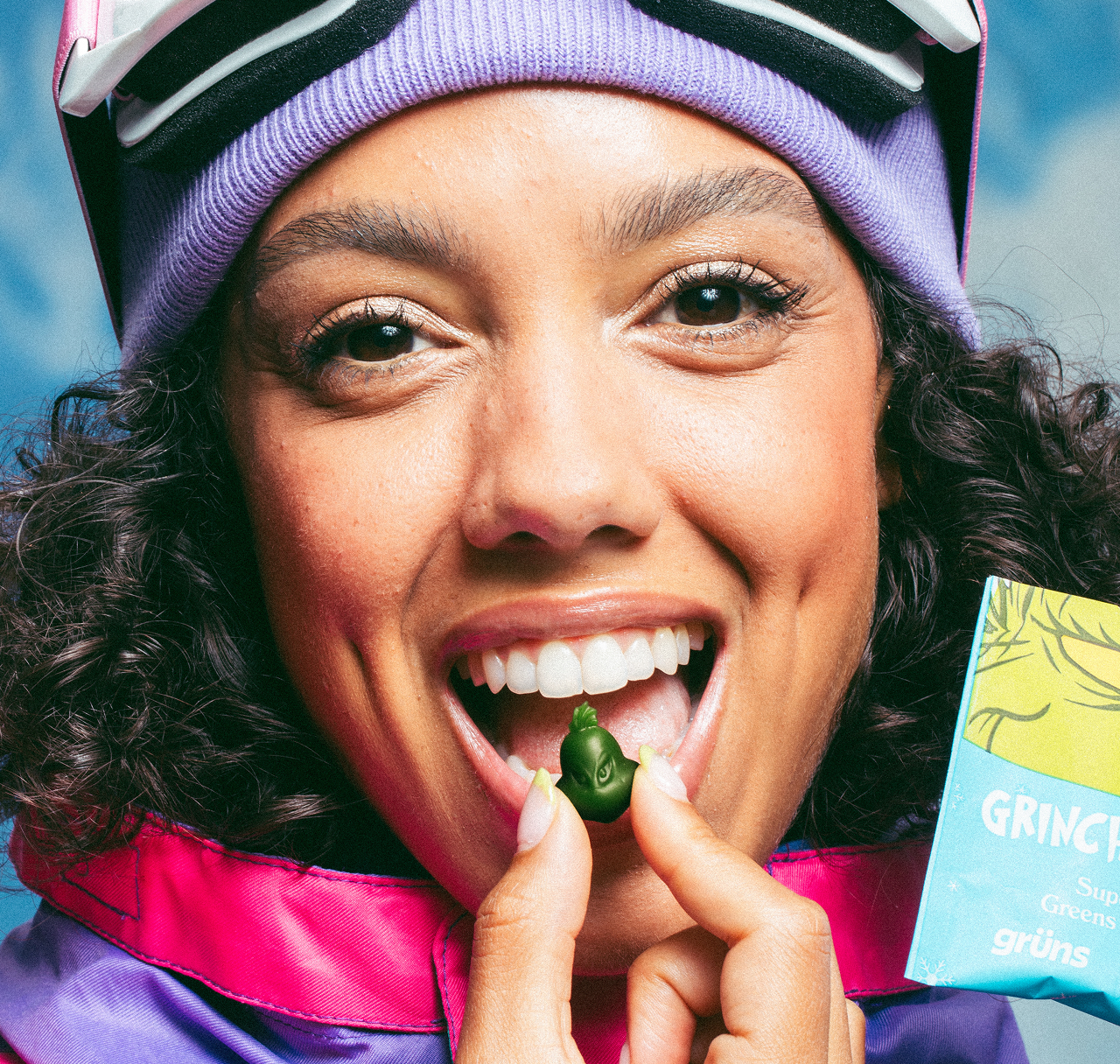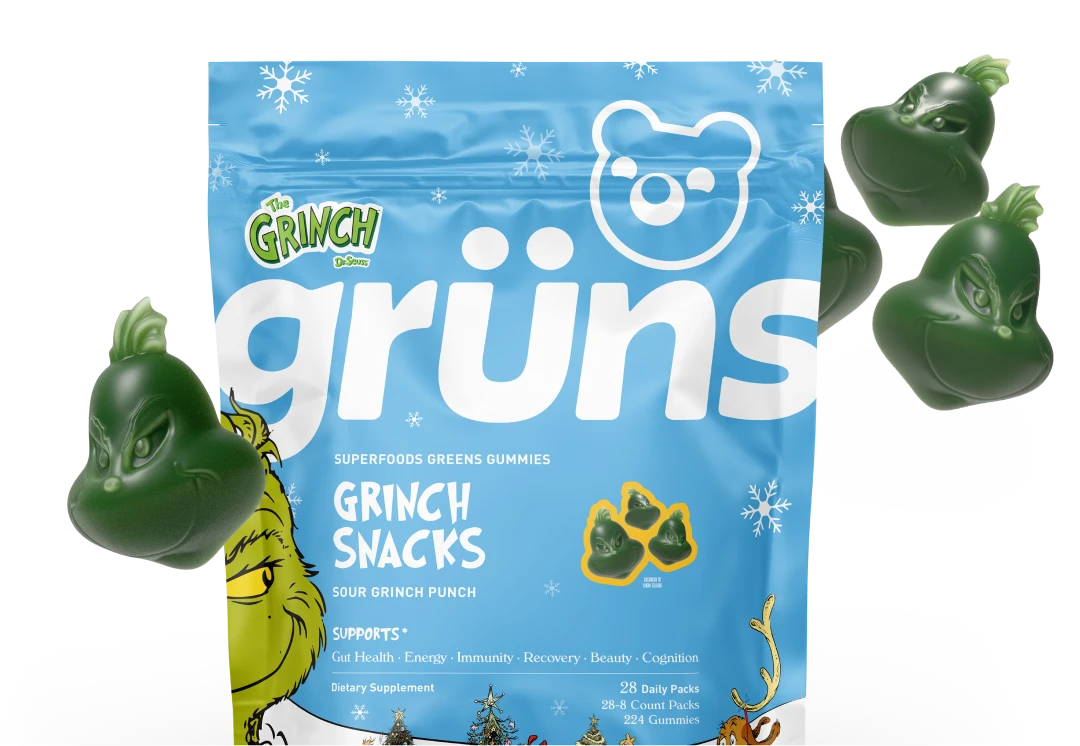 Introducing limited-edition Grinch Snacks, your favorite superfoods greens gummies in a festive, tart berry punch flavor.