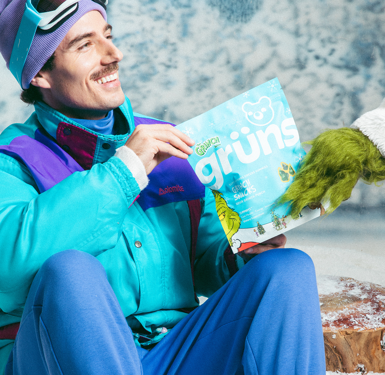 Shaun White is a paid spokesperson and investor in Grüns. He also still rips and loves taking Grüns to the slopes with him.