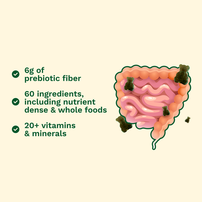 New time zones, dehydration, and eating out every meal — your gut doesn't stand a chance. Grüns delivers 6g of prebiotic fiber per daily pack to feed the good bacteria that keep you regular. No laxatives, no guesswork. Just easier, more regular digestion wherever you land.