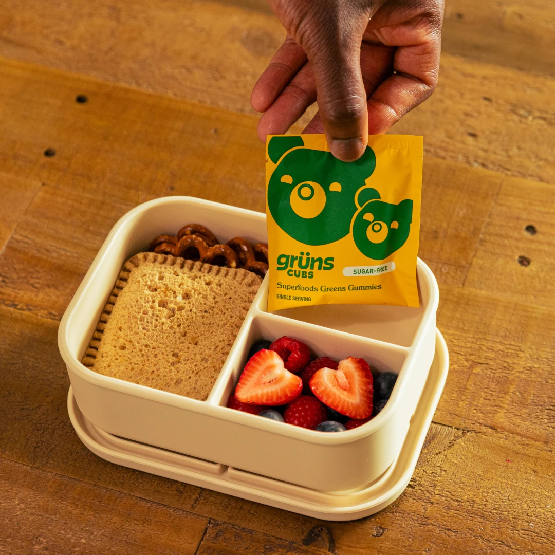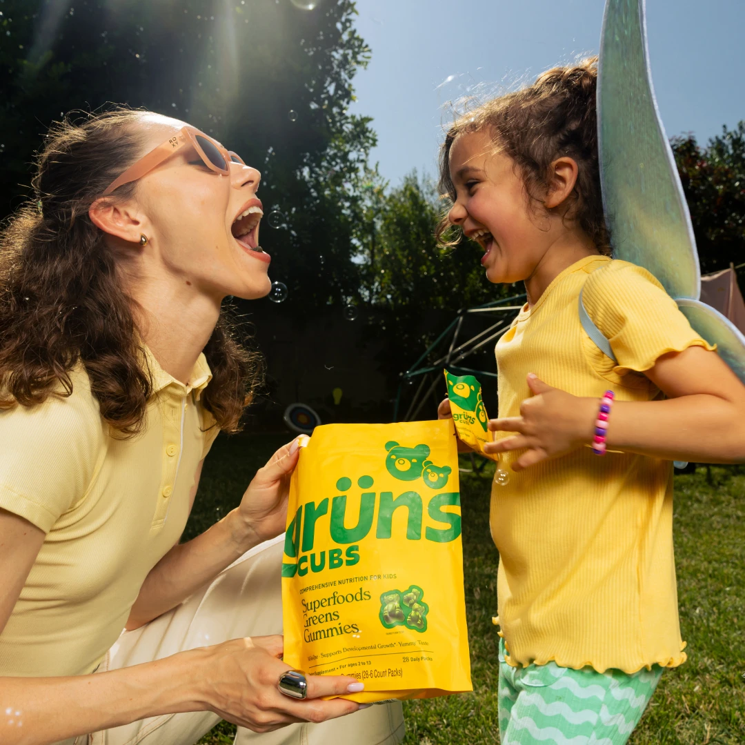 Most kids don’t get enough essential nutrients from diet alone. Grüns Cubs delivers 21+ vitamins and minerals including methylated B12, folate, and D3 in a format even picky eaters enjoy. No powders, no bribing, just one simple and delicious pack.