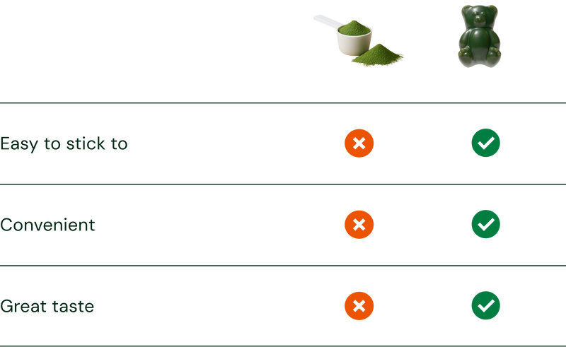Gummies begin breaking down almost immediately, resulting in nutrient absorption earlier in the digestive process. This leads to fast and efficient bioavailability (delivery of nutrients into the bloodstream).